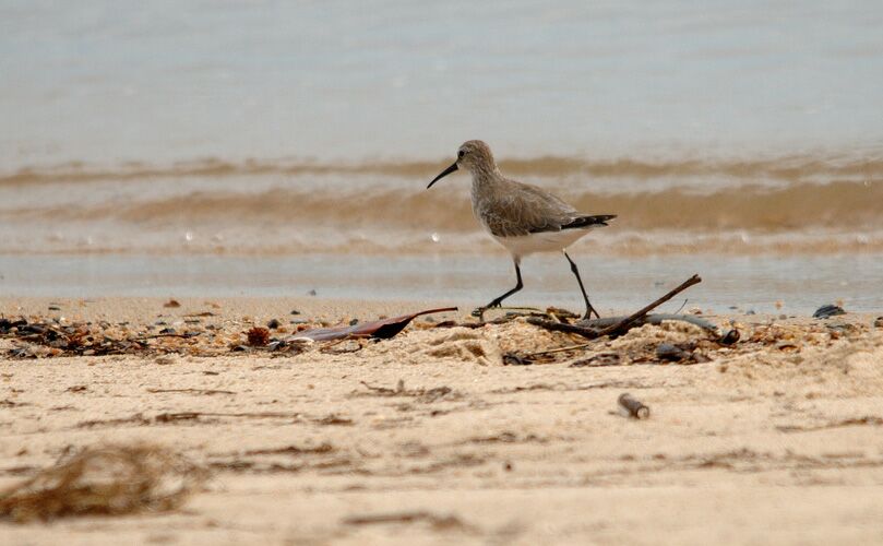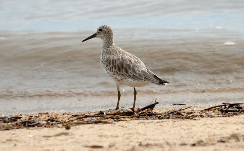 オオソリハシシギとよく似ていますが、喙がまっすぐで、尾の先の黒い部分が明瞭です。
