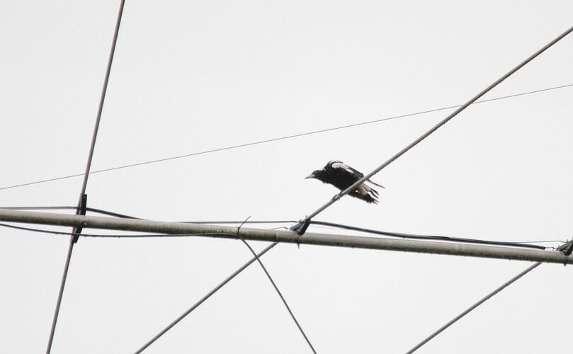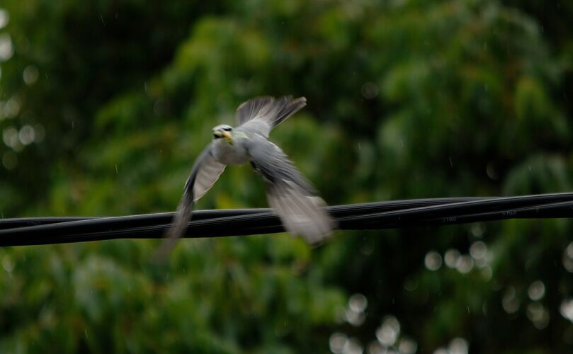 電線止まりからの飛び出し。雨の中でシャッター速度が遅かったのが残念。
