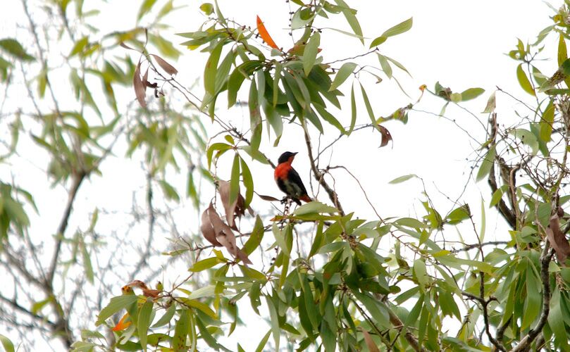 真っ赤で綺麗な鳥ですが、小さいです。遠くてなんとかやっと一枚だけ撮ることができました。